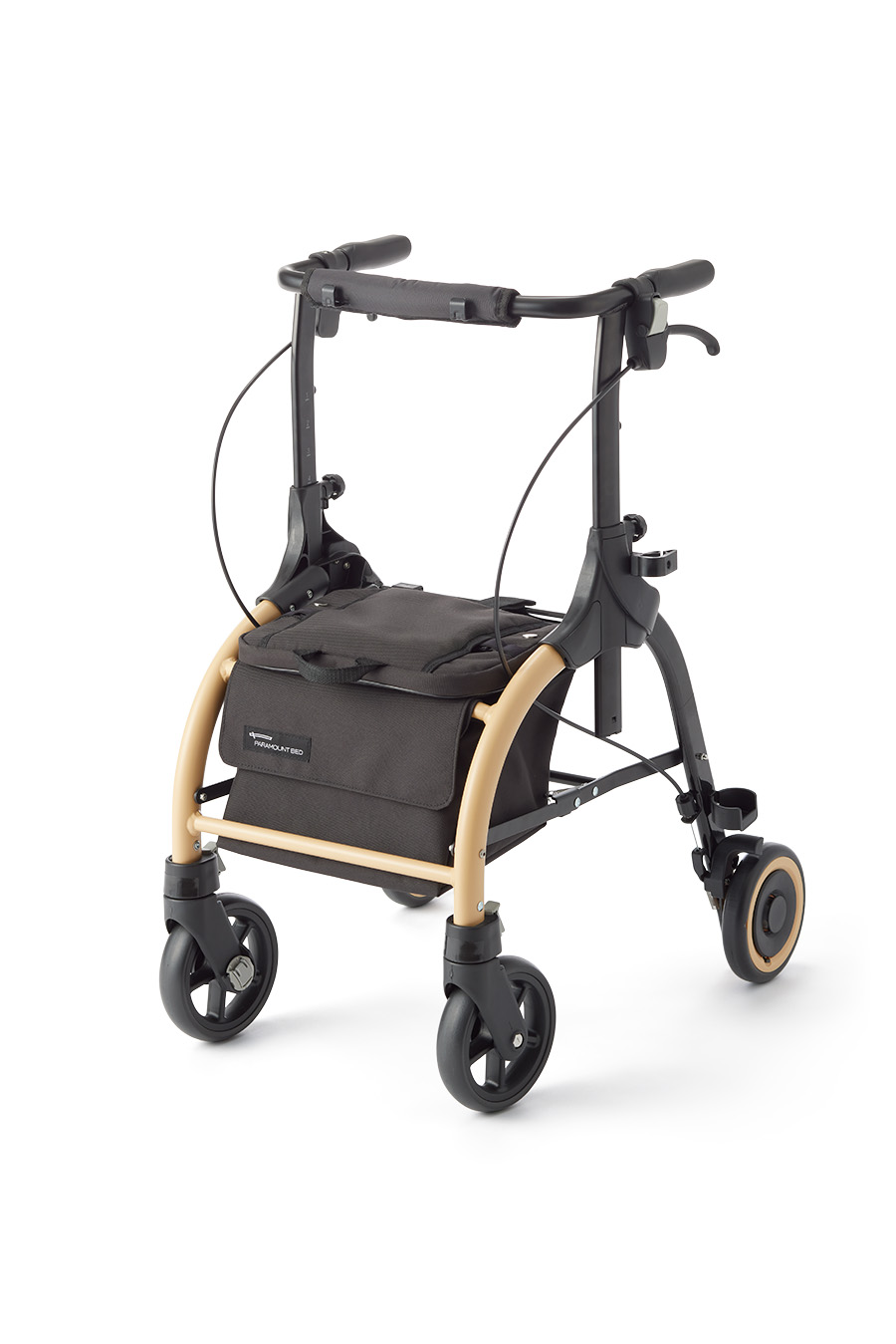 本製品は狭い場所での移動も安心の全幅48cmのコンパクトサイズが特徴です。また、幅広い身長に対応できるように、押し手の高さを70cmから91cmまで8段階に調節可能にしました。座面に座って休憩できるほか、買い物カゴを載せて移動もできます。座面下に荷物を入れられる収納バスケットや杖を取り付けられるホルダー、袋やカバンをかけられるフックを付けて、ご利用者の外出や買い物をサポートします。